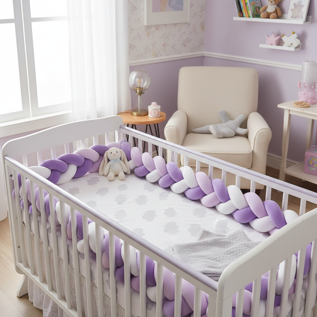 Tour de lit tresse pour bébé : douceur et protection couleur parme